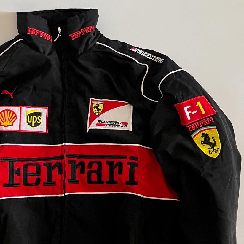 Experience the thrill of Formula 1 with this premium Ferrari Racing Jacket, designed for speed enthusiasts and motorsport fans. Featuring high-quality embroidered Ferrari logos, authentic Scuderia Ferrari & Shell sponsor patches, and a bold black-and-red racing design, this F1 team bomber jacket is the ultimate statement piece. Crafted for comfort and style, it’s perfect for everyday wear, track days, and F1 events. Whether you're a die-hard Ferrari fan or a streetwear lover, this jacket is a must-have collector’s item.