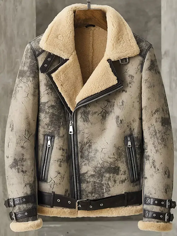 Elevate your winter style with this premium B3 aviator shearling jacket, featuring a rugged distressed leather exterior and luxurious fur lining for ultimate warmth. Designed with a bold asymmetrical zipper closure, this vintage flight bomber coat exudes classic aviation style with a modern edge. Complete with adjustable waist belts, secure zippered pockets, and a thick shearling collar, this timeless pilot jacket is perfect for bikers, aviators, and leather enthusiasts looking for both fashion and function.