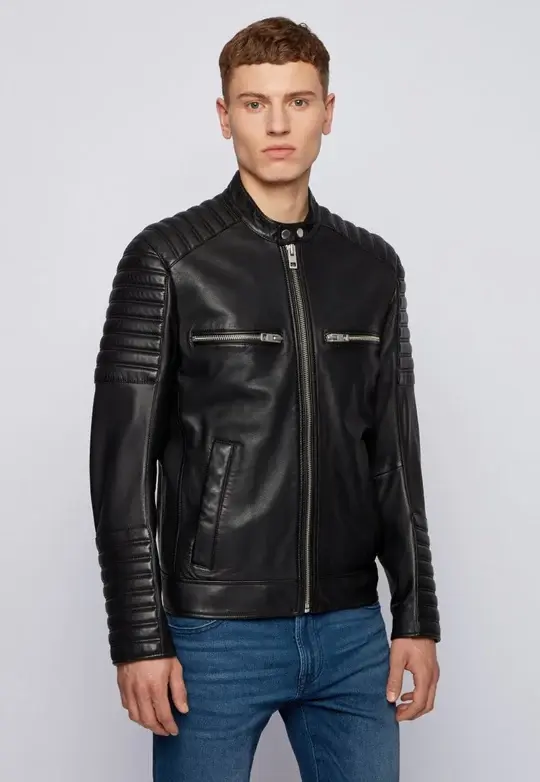 Upgrade your style with this premium men’s black leather biker jacket, featuring a sleek motorcycle design, quilted shoulders, and high-quality craftsmanship. A perfect blend of durability, comfort, and edgy fashion. Ideal for bikers and casual wear.